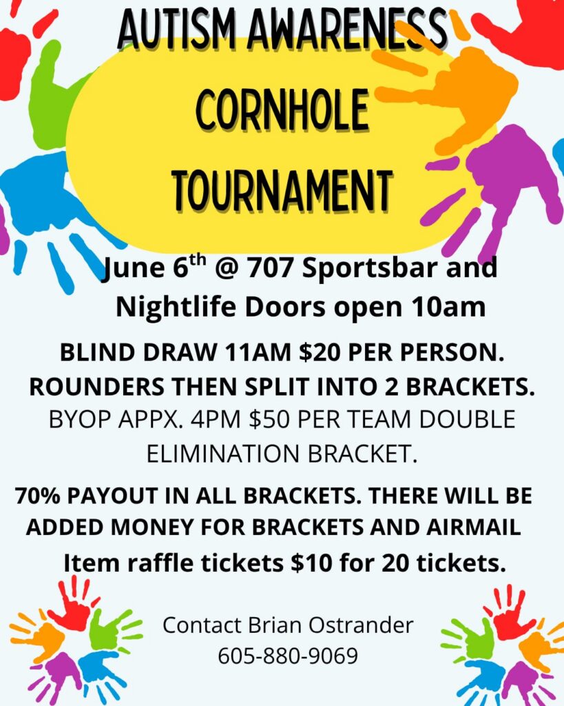Join us at 707 Sports Bar & Nightlife on June 6th for an Autism Awareness Cornhole Tournament 💙 Doors open at 10AM with a blind draw starting at 11AM ($20...